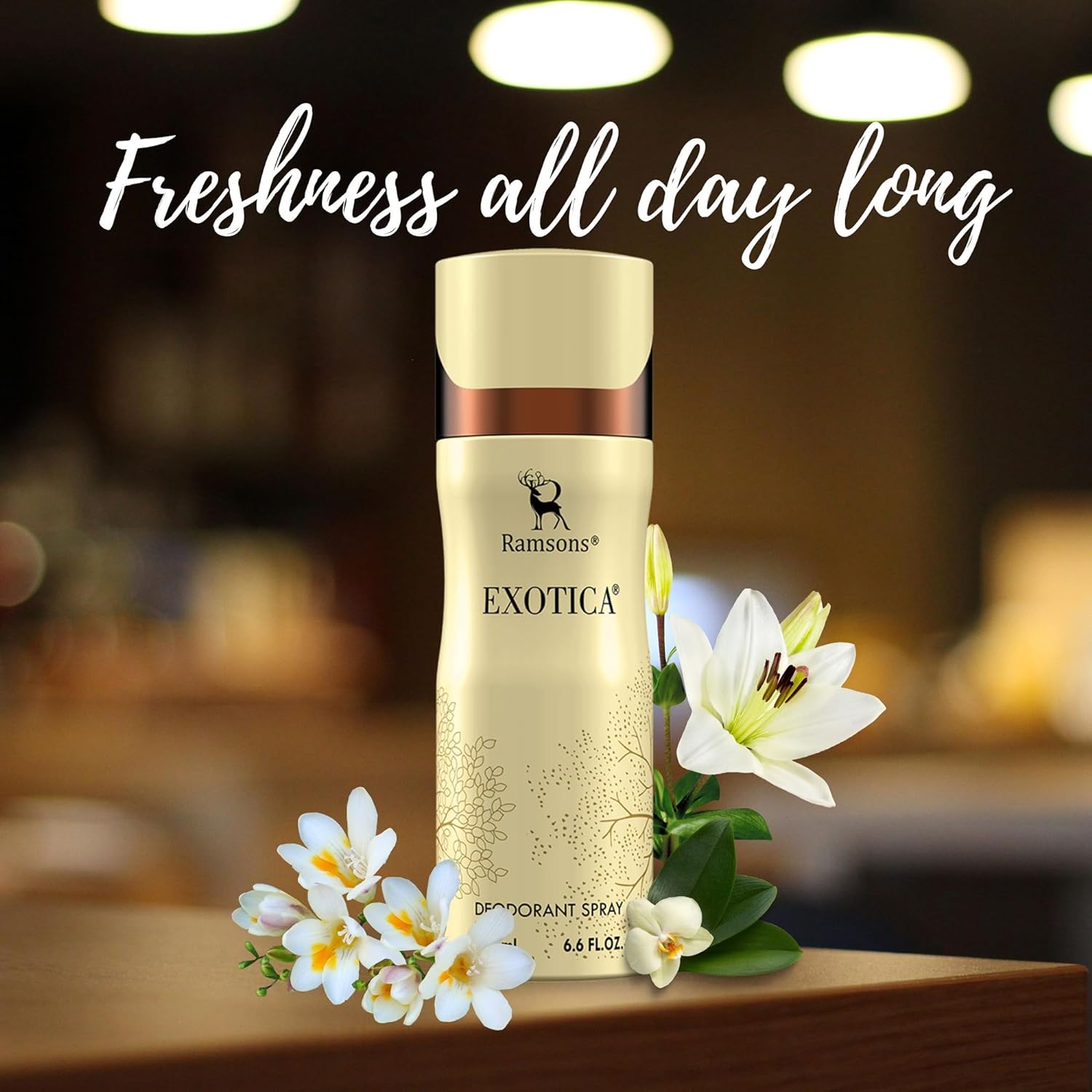 Rs. 279.00Sale price Rs. 250.00Brand RAMSONS Item Form Spray Scent Exotica Material Type Free Cruelty free Number of Items 1 Net Quantity 200 mlSale -